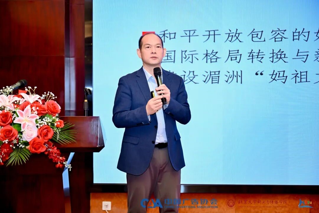 中国广告协会会长、国际广告协会全球副主席张国华在致辞中指出,妈祖文化蕴含的“立德、行善、大爱”理念,是中华文化与人类命运共同体的价值精髓,更是连接两岸同胞的重要文化纽带。他呼吁广告学界与业界要着重把握妈祖文化IP独特的传播与产业发展价值与优势,运用现代营销手段及前沿数字技术,助力妈祖文化实现创造性转化和创新性发展,为莆田市知名度与美誉度的提升注入传播动能。