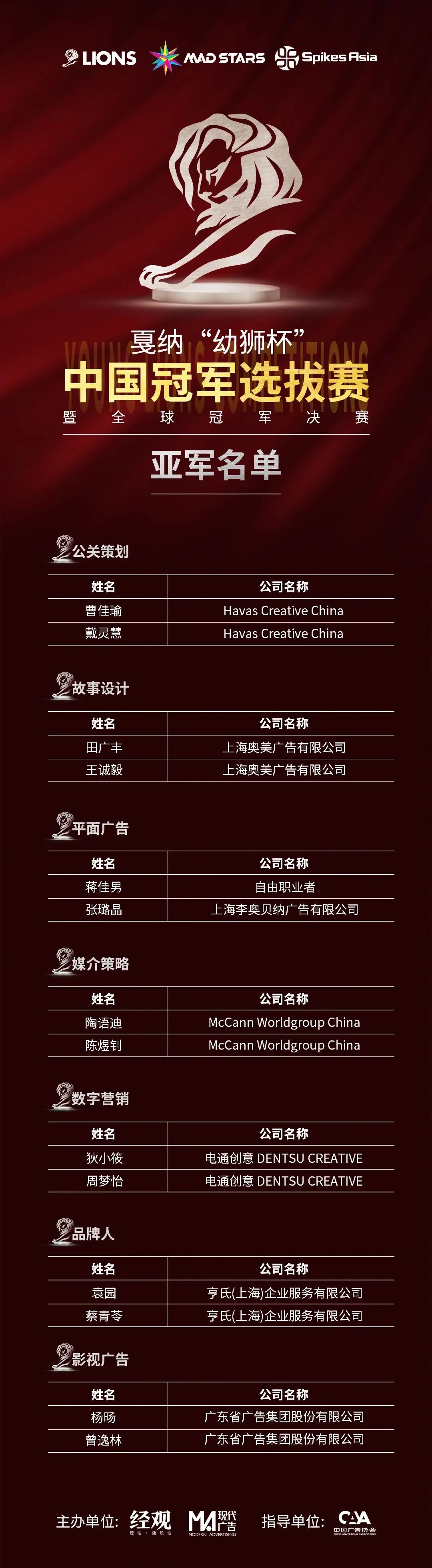 4月23日,2024戛纳“幼狮杯”中国冠军选拔赛终审会圆满落幕,来自中国的7组创意之星晋级2024釜山国际广告节New Stars全球赛!