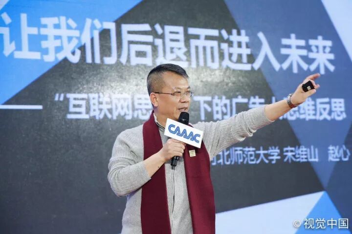 河北师范大学新闻传播学院副教授宋维山演讲“让我们后退而进入未来——‘互联网思维’下的广告人思维反思”。
