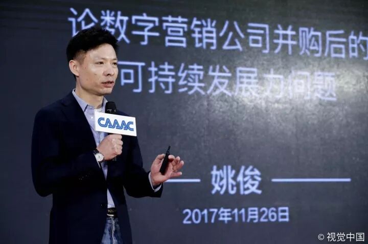 顺为互动CEO姚俊演讲“路在何方——论数字营销公司并购后的可持续发展力问题”。